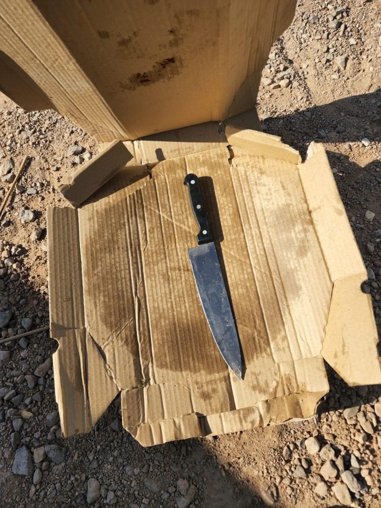 מצ"ב תמונת כלי הרצח כפי שנמצאה ע"י השוטרים בזכות דיווחו של הנער – קרדיט דוברות המשטרה