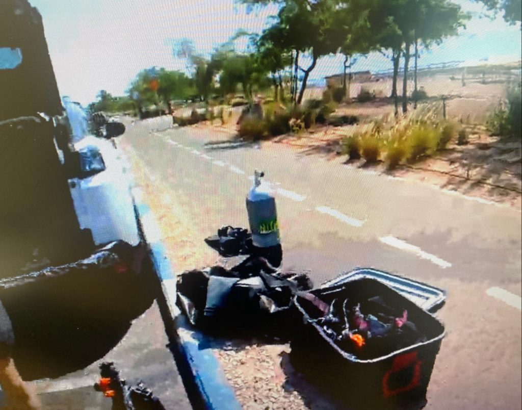תמונת ציודו של הצוללן כפי שנתפס ע"י השוטרים בעת עיכובו