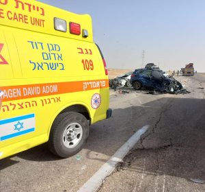 אישה כבת 65 נספתה בתאונת דרכים בכביש 90 . צוותי מד"א פינו 3 ילדים שנפצעו קל.