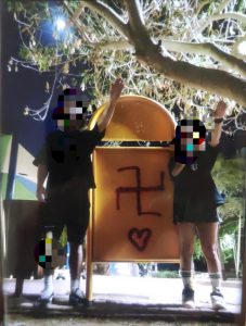 ביום שישי האחרון, בשעות הלילה המאוחרות, התקבל דיווח במוקד 100 של משטרת ישראל, אודות שניים המרססים כתובת גרפיטי בפארק קנדה בשכונת מערב שבע. שוטרי הסיור